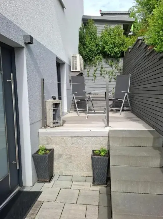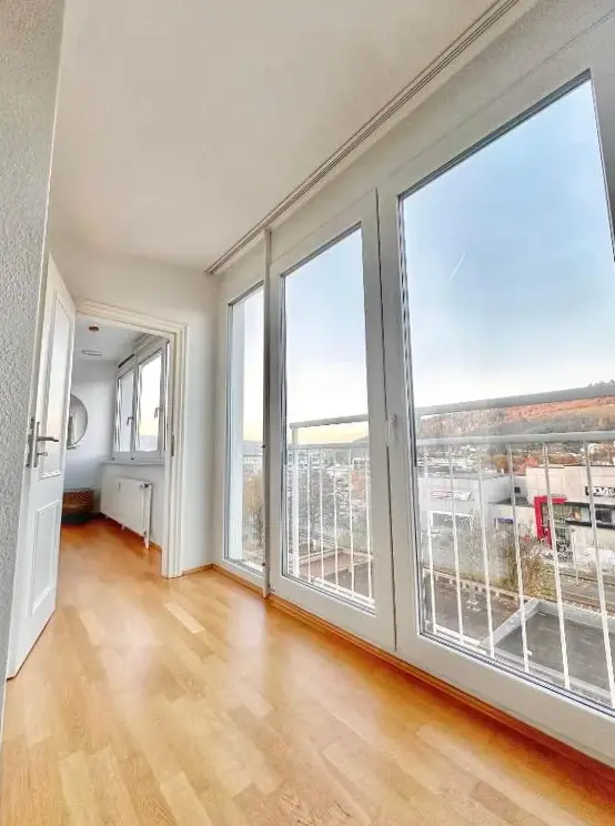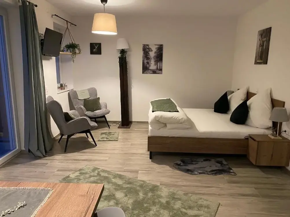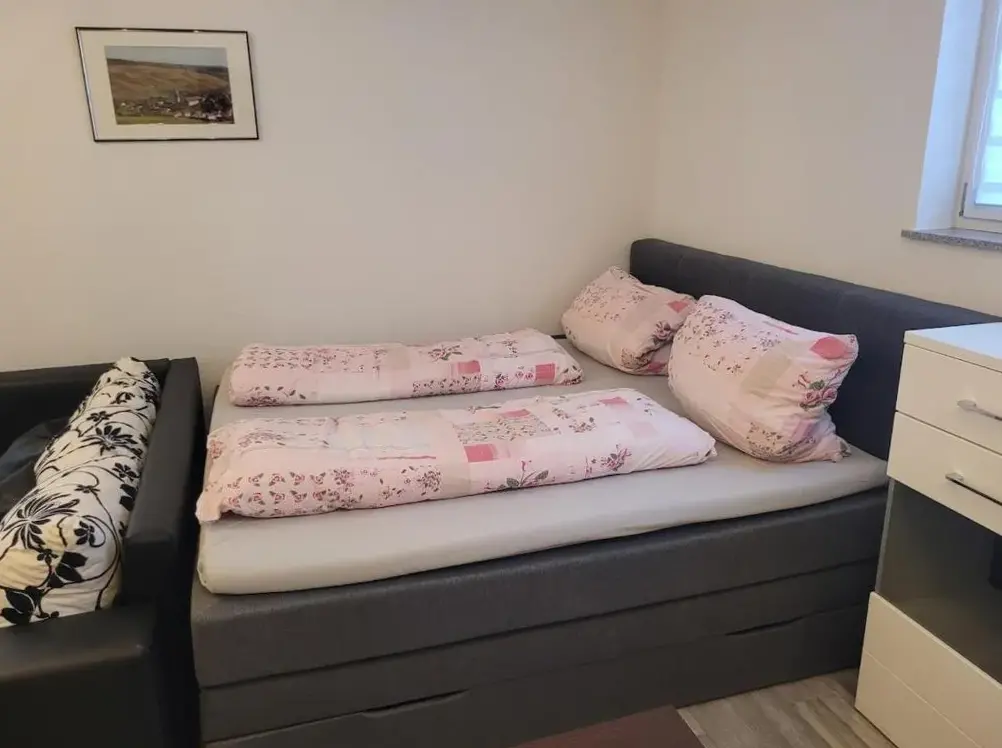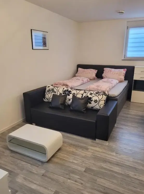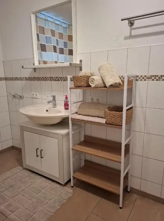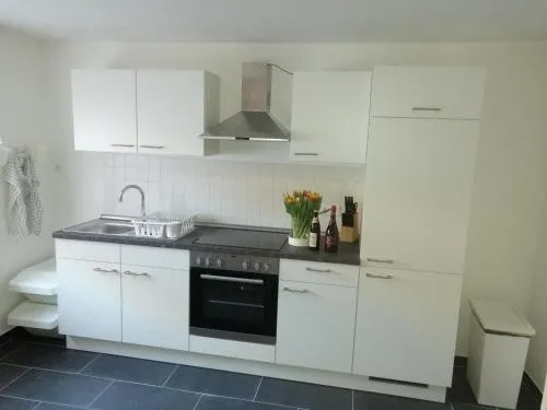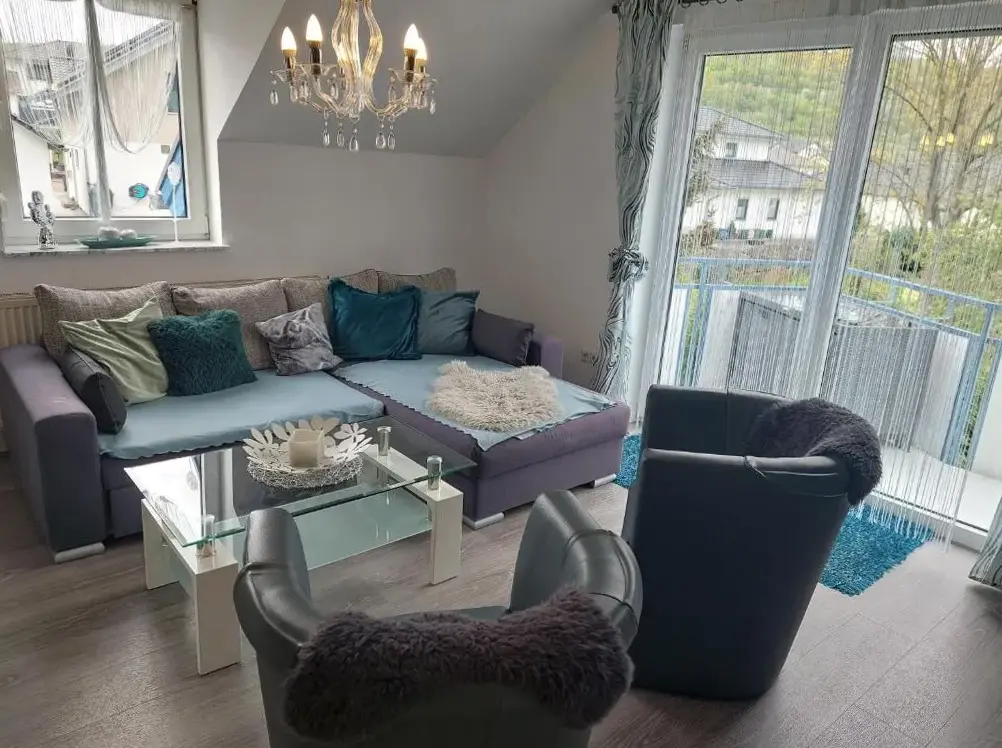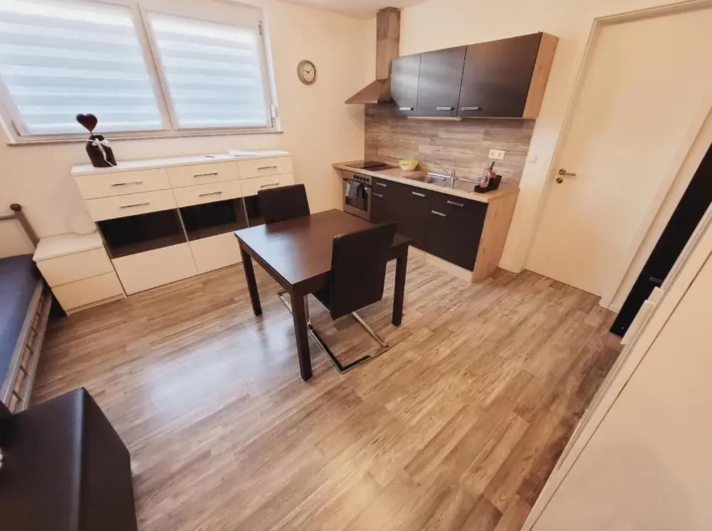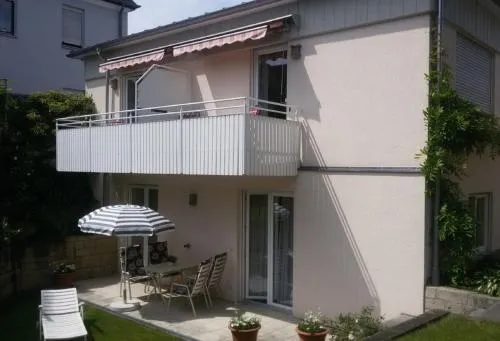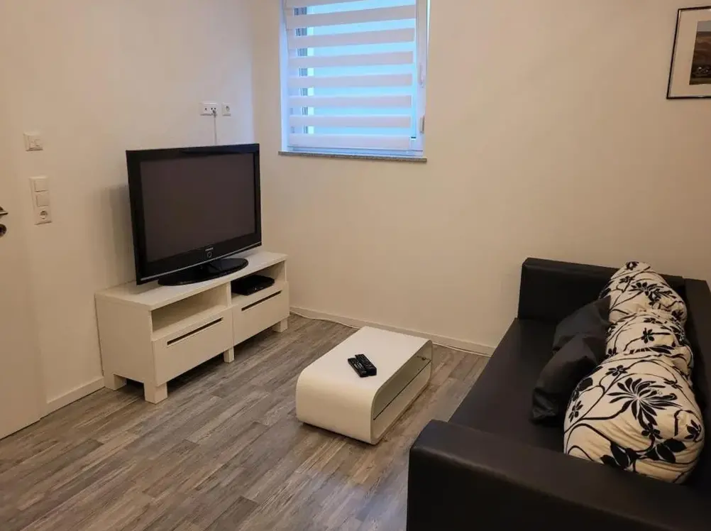 More information about Hotel AlexaFerienwohnung am Blumenberg in Bad Mergentheim offers a one-bedroom apartment with a terrace and free WiFi, featuring a living room with a sofa bed and dining area. Modern amenities include air-conditioning, a kitchenette with a coffee machine, a washing machine, a balcony, dishwasher, and TV, plus free on-site parking. Guests can enjoy nearby hiking and cycling, with Stuttgart Airport 83 mi away.