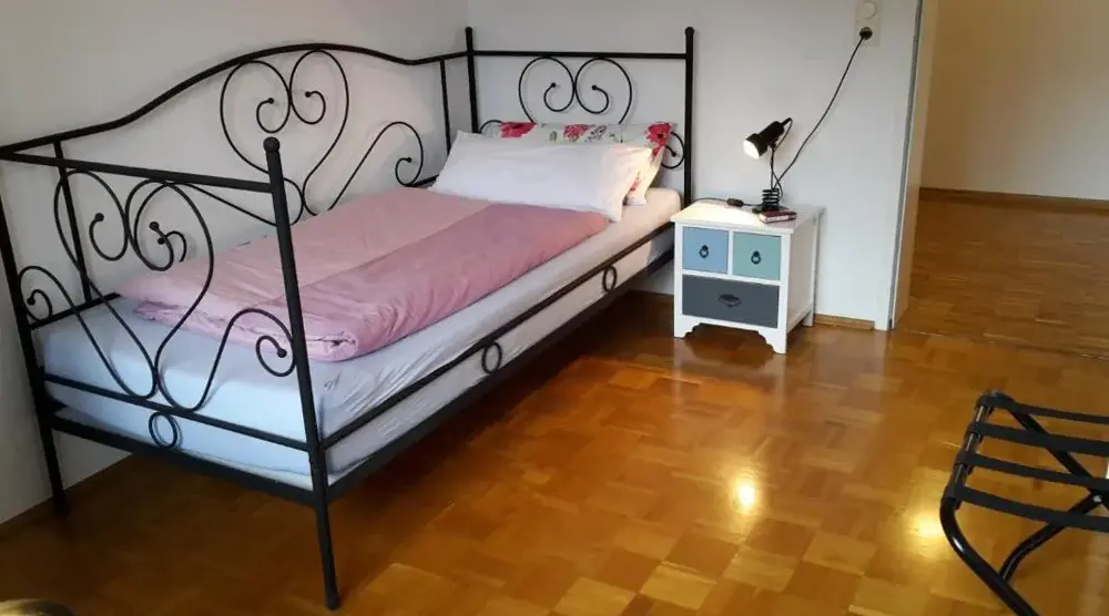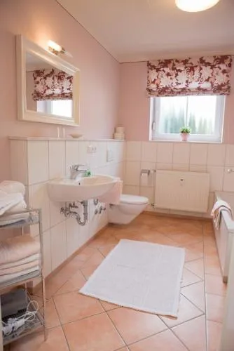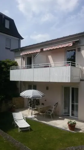 More information about Gemütliches Dach-Apartment in der Stadt - ADAM -Hotelpension Gästehaus Birgit in Bad Mergentheim offers family rooms with private bathrooms, balconies, and garden views, plus a work desk, TV, and free WiFi. Guests can enjoy the sun terrace and garden, outdoor seating, and bicycle parking. A buffet breakfast with warm dishes, pastries, cheese, fruits, and juice is served daily.