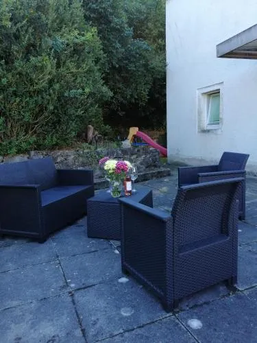 More information about Ferienwohnung HagelsteinSpacious Accommodations: Ferienwohnung Dorfperle in Bad Mergentheim offers a spacious apartment with three bedrooms and a living room. The property features a private bathroom and a fully equipped kitchen. Outdoor Amenities: Guests can enjoy a sun terrace and a garden, perfect for relaxation. The apartment includes an outdoor seating area, barbecue facilities, and bicycle parking.