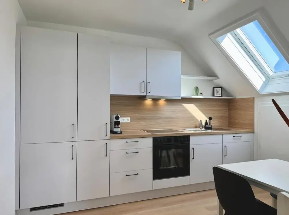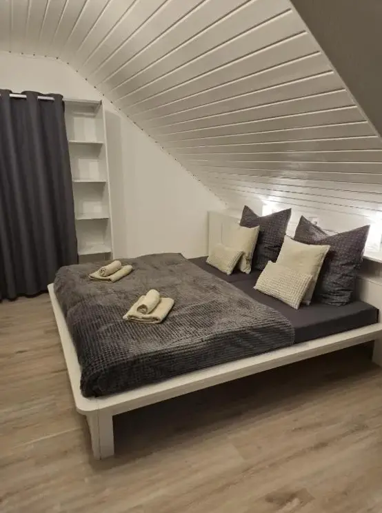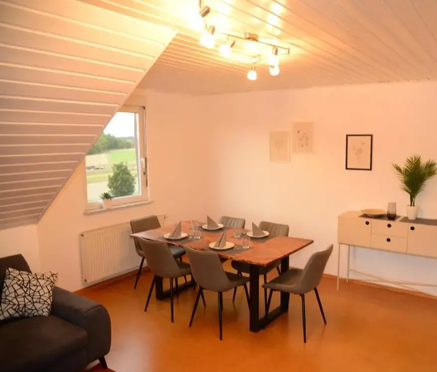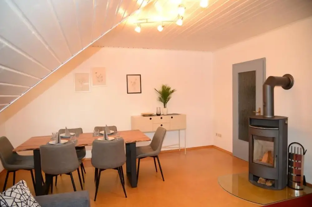 More information about Ferienwohnung am BlumenbergGemütliches Dach-Apartment in der Stadt - ADAM - offers a recently renovated apartment in Bad Mergentheim with two bedrooms and a private check-in and check-out service. Guests enjoy free WiFi, a fully equipped kitchenette, a dining area, seating space, and a TV.