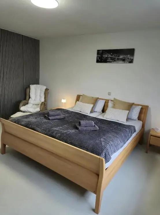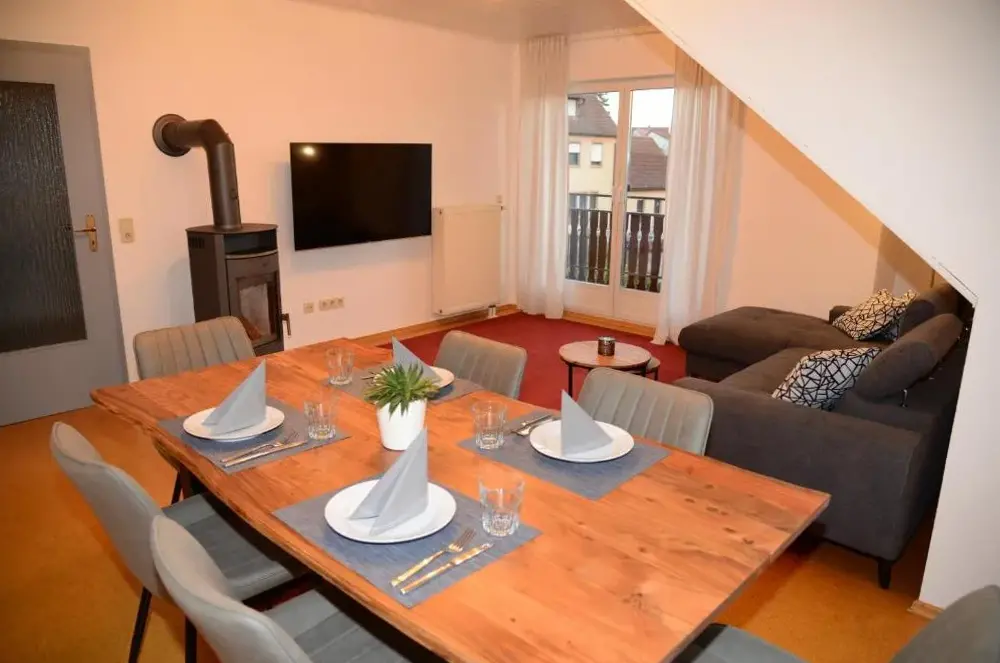 More information about Exklusives vollmöbliertes Apartment im Herzen von Bad MergentheimFerienwohnung Abendsonne in Bad Mergentheim offers a spacious apartment with three bedrooms and a living room, a balcony, washing machine, and free WiFi. The fully equipped kitchen includes a dishwasher, microwave, and oven, complemented by a fireplace, TV, and work desk. Located a short drive from Stuttgart Airport (87 mi) and near Mainfränkisches Museum, S.