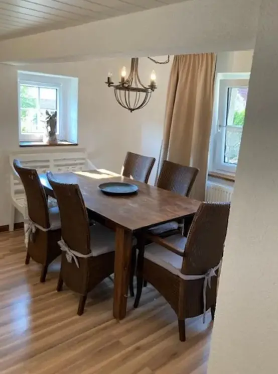 More information about Urlaub in der SchwarzrieslingstraßeFerienwohnung Wintersonne in Bad Mergentheim offers a spacious ground-floor apartment with three bedrooms, a living room, terrace and garden. Modern amenities include free WiFi, a fully equipped kitchen with refrigerator, microwave, dishwasher and oven, plus a fireplace, TV, dining area and on-site private parking.