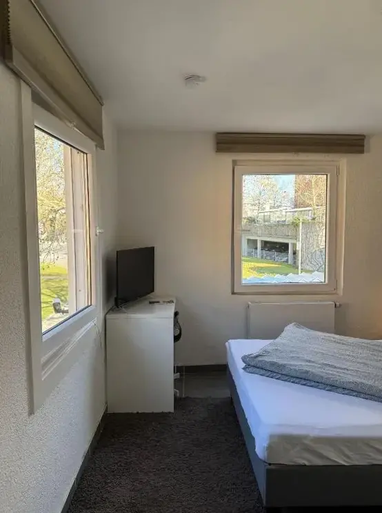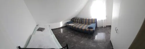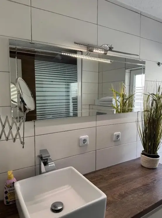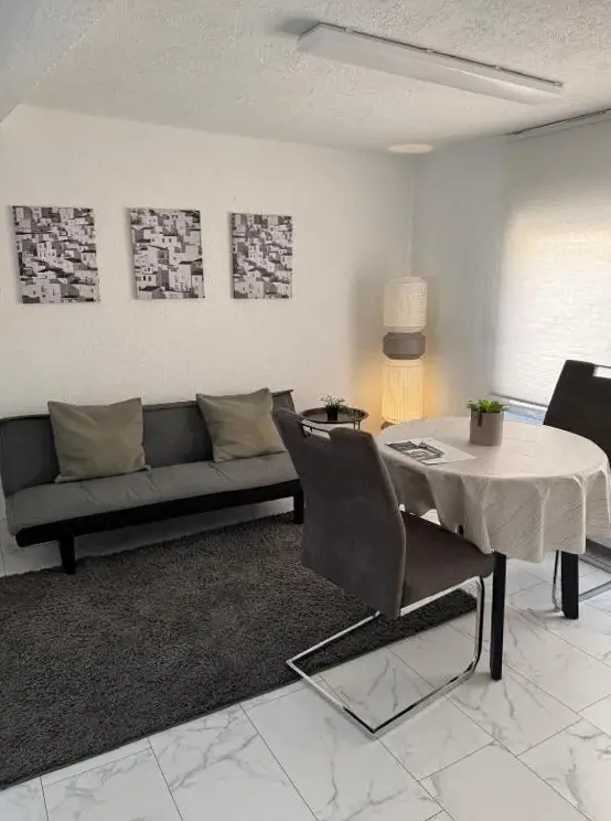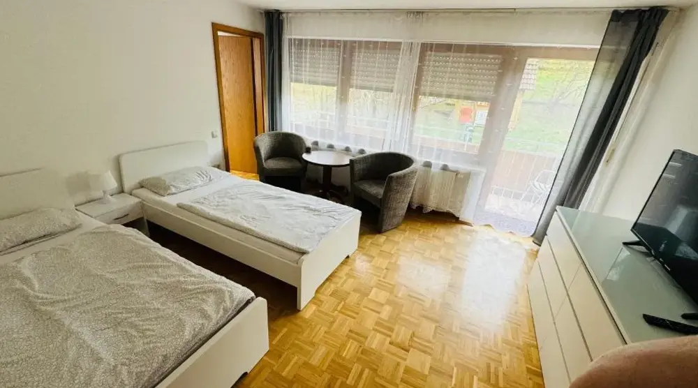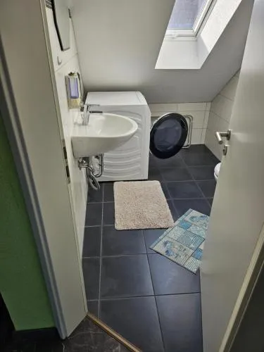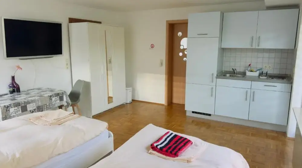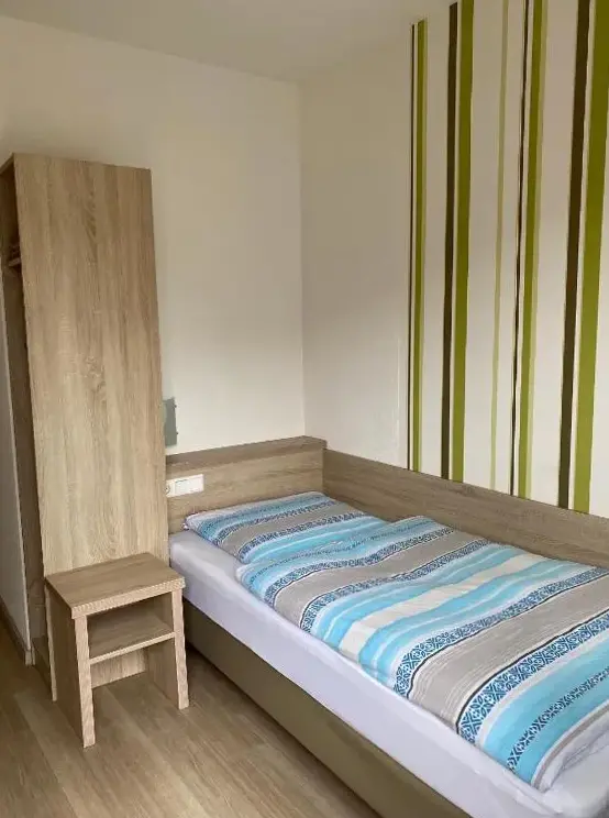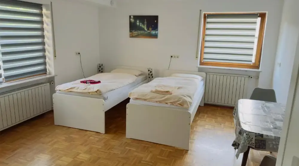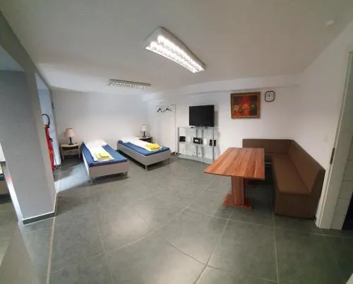 More information about Monteurzimmer Ferienwohnungen Fritsche-EdelfingenZimmer in Bad Mergentheim offers comfortable accommodations with free WiFi and a shared kitchen, located at Dorfstraße 119 Einfamilienhaus, 97980 Bad Mergentheim. The property provides a kitchenette, dining table, refrigerator, electric kettle, kitchenware, hairdryer, and access to a shared bathroom and shower; reception staff speak German, ensuring smooth communication.