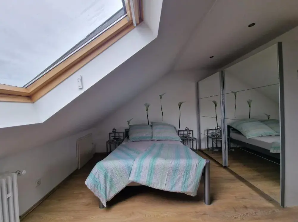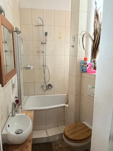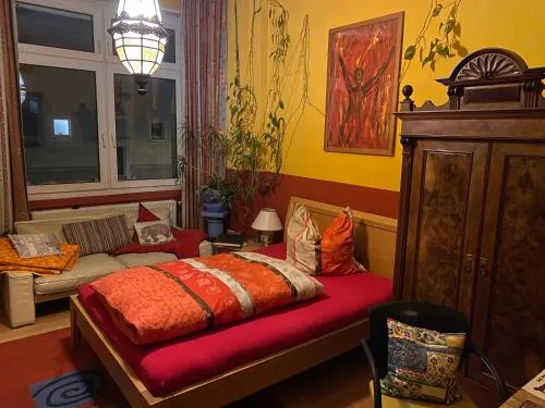 More information about Pension Stadt MannheimCheerful Roof Flat in a Private German Style House offers spacious accommodations with a sun terrace and garden, along with on-site amenities including a restaurant, bar, free WiFi, and a shared kitchen. Located in Mannheim at 16 Steinsburgweg 16, the property is close to Mannheim Central Station and several attractions such as Luisenpark and Heidelberg-related sites.