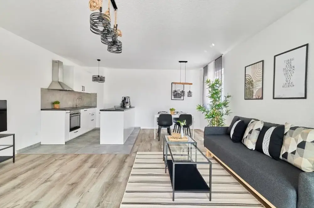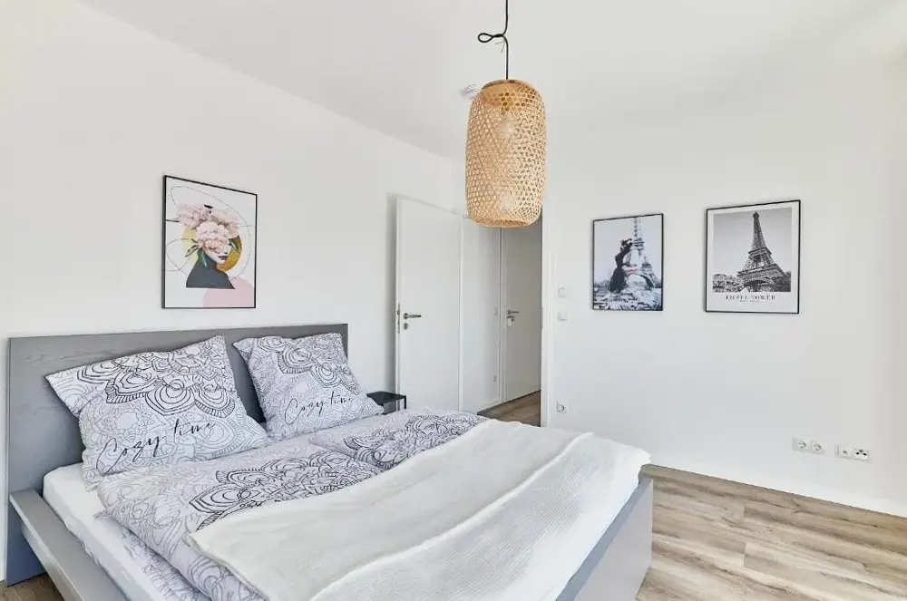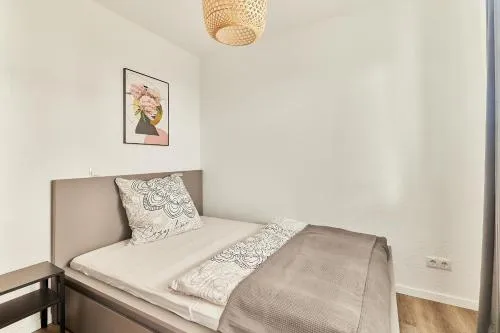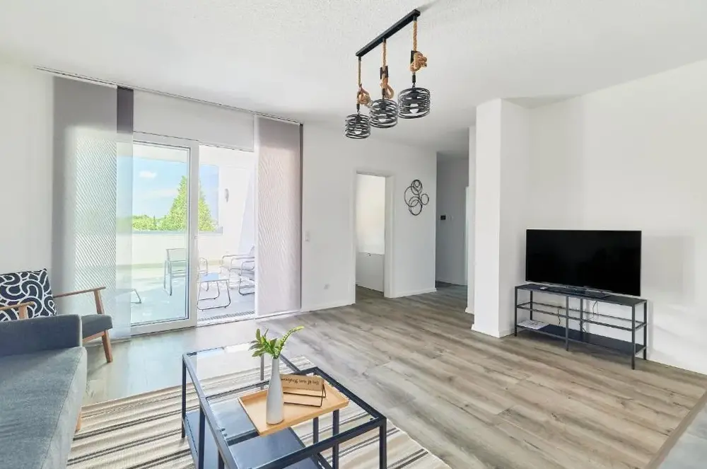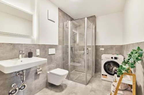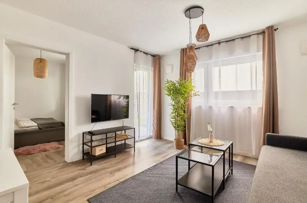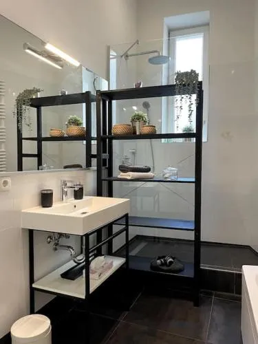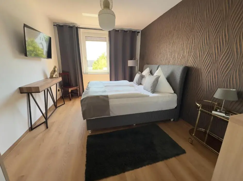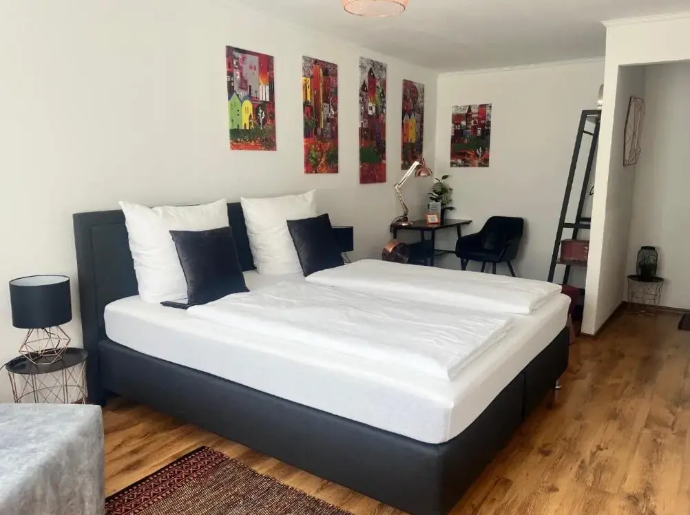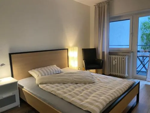 More information about Moderne Stilvoll eingerichtete NeubauwohnungHotel am Hafen in Mannheim offers comfortable bed and breakfast rooms with private bathrooms, garden or city views, and modern amenities. Each room includes a tea and coffee maker, work desk, and free WiFi. Guests can relax on the sun terrace or enjoy the outdoor seating area. The property features a minimarket, bicycle parking, and barbecue facilities, with free on-site private parking.