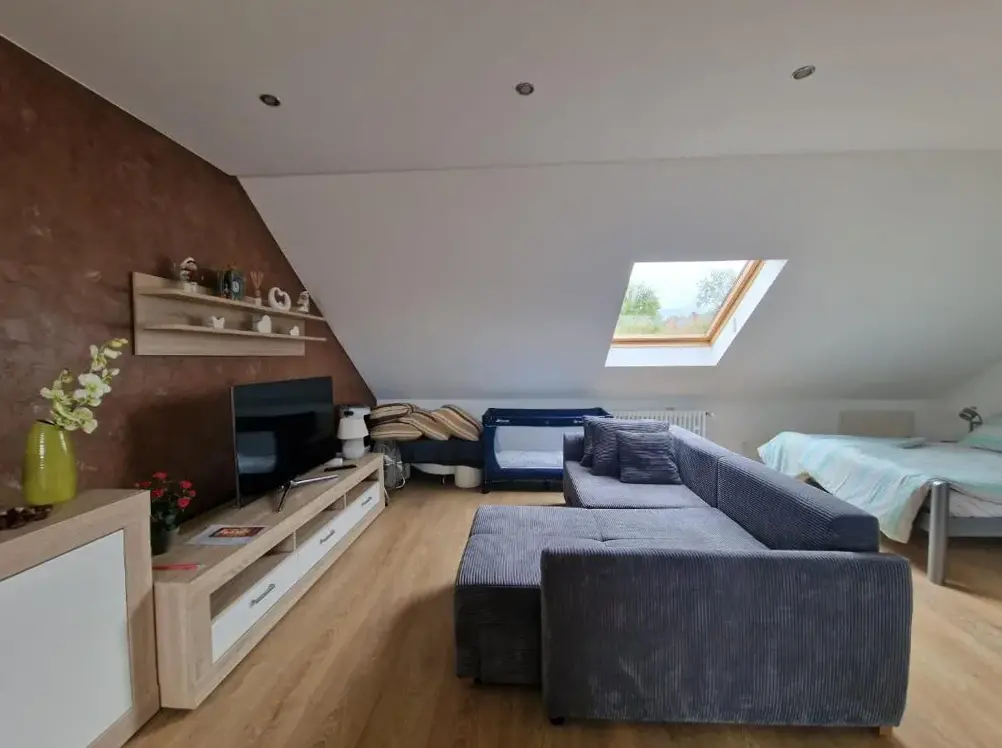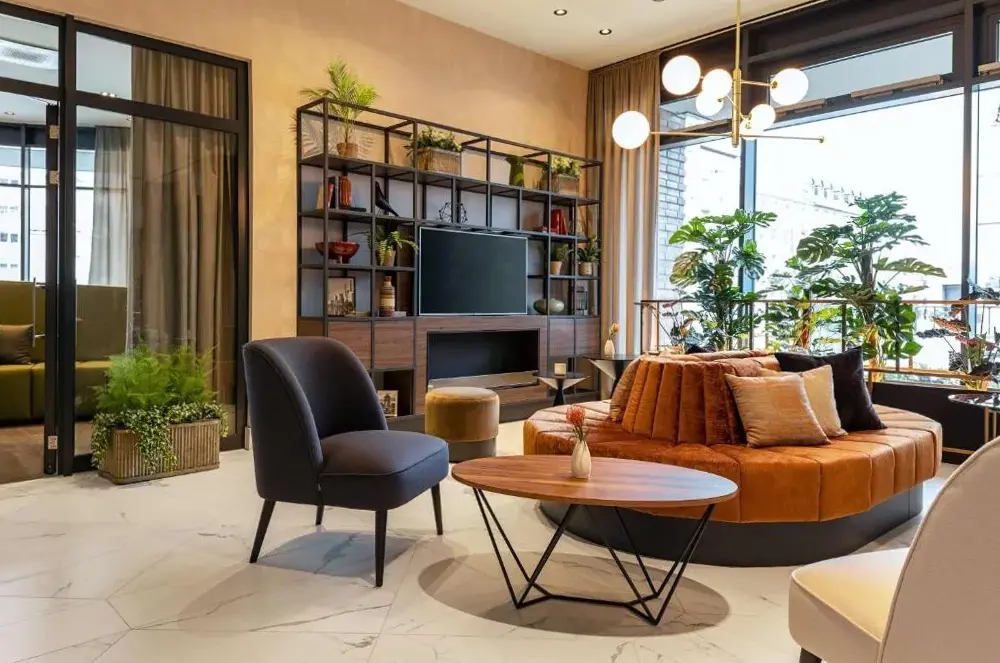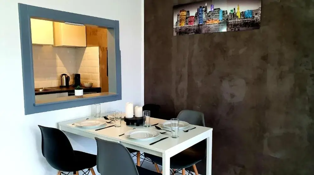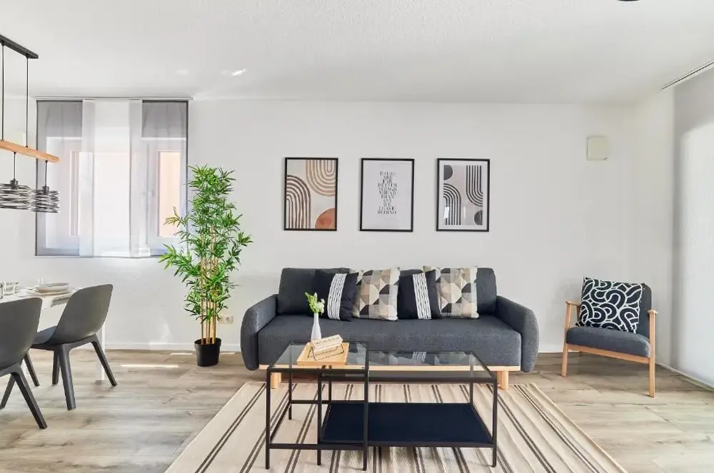 More information about Mood contemporary livingModern Comforts: The apartment offers a terrace and free WiFi throughout the property. Guests enjoy a fully equipped kitchen with a dishwasher, oven, and stovetop. The living room features a sofa bed, TV, and soundproofing. Convenient Amenities: The ground-floor unit includes a washing machine, private bathroom with free toiletries, and a dining area.