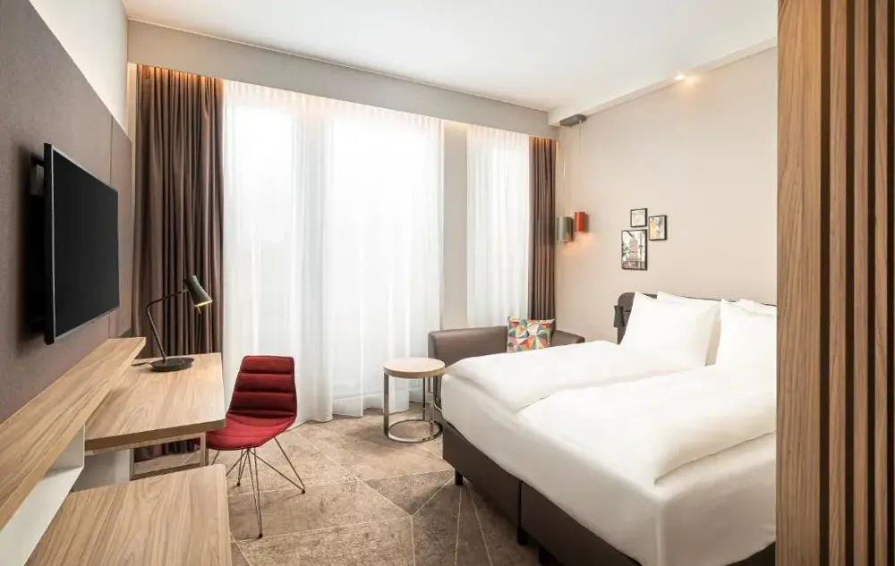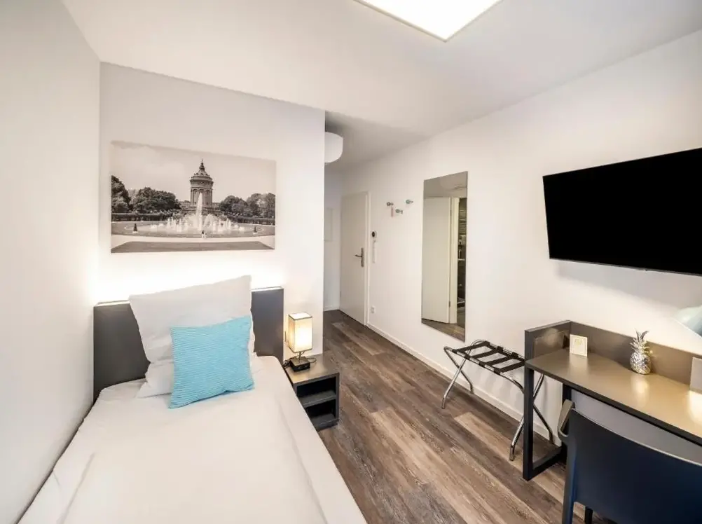 More information about Work & Sleep Boardinghouse MannheimNH Mannheim sits 1.6 miles east of Mannheim’s city center in the business district, combining modern design with comfortable, air-conditioned rooms for a relaxed stay. Guests enjoy free WiFi, a 24-hour reception, a fully equipped gym, and an on-site restaurant serving regional and international cuisine in an industrial-style setting with high ceilings and natural daylight.