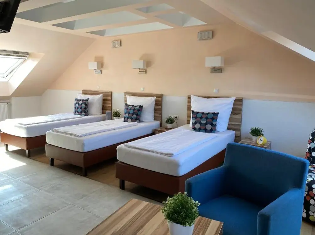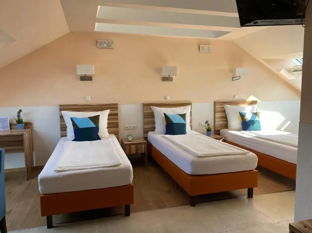 More information about Lanzcarré Hotel Mannheim, a member of Radisson IndividualsPension Stadt Mannheim offers comfortable accommodations in Mannheim with family rooms featuring private bathrooms, air-conditioning, and free WiFi. Each room includes a work desk, TV, and wardrobe. Guests enjoy an on-site garden, bar, outdoor fireplace, and outdoor seating area, along with a minimarket, coffee shop, and bicycle parking. Free on-site parking is available.