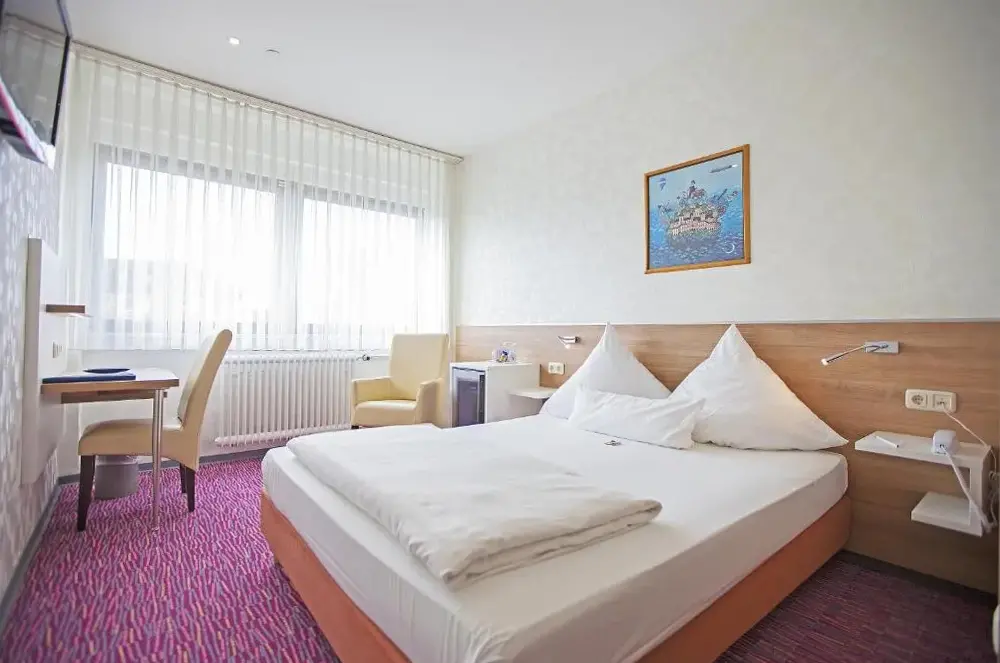 More information about Rheinauer Hof - bed & breakfastHoliday Inn - the niu, Square Mannheim by IHG offers air-conditioned rooms with private bathrooms, hypoallergenic bedding, and free WiFi, a TV, walk-in shower, and seating area. The modern restaurant serves European cuisine with vegetarian options for lunch and dinner, and a bar provides a relaxing atmosphere. A buffet breakfast is available each morning.