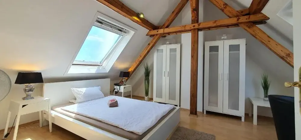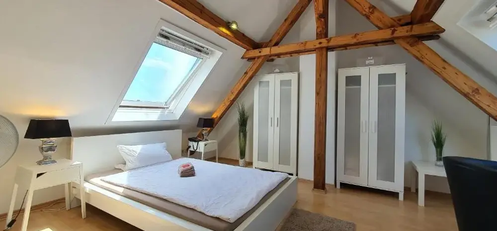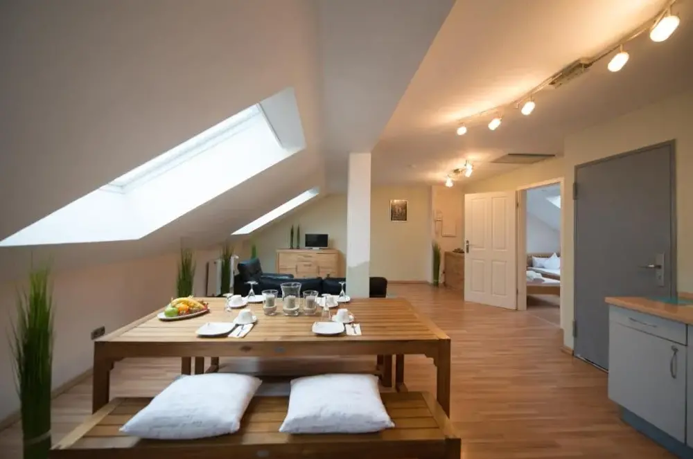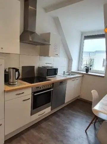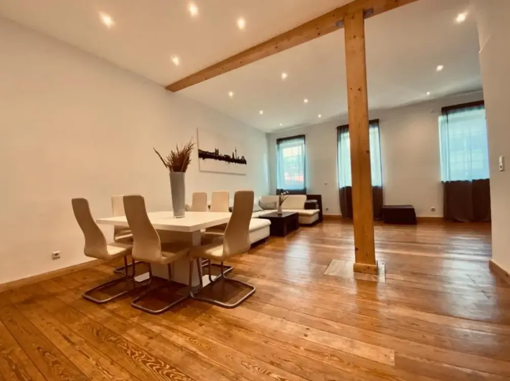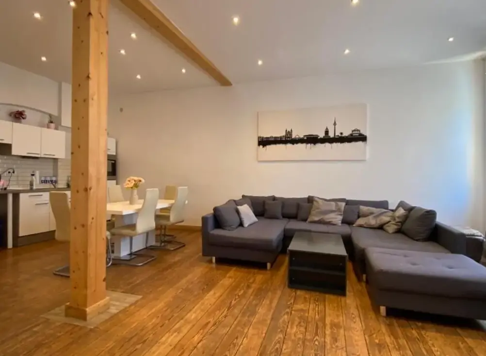 More information about Colodging Mannheim - Private Rooms & KitchenLoft im Szeneviertel Mannheims offers a spacious holiday home in Mannheim city center with three bedrooms and a living space that includes a kitchenette, dining area, and a sofa. Guests enjoy free WiFi and a terrace, along with free bicycles. Situated close to major attractions, the property is 1.1 miles from the National Theater Mannheim and the University of Mannheim, and 1.