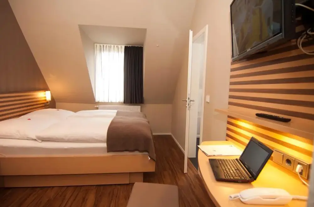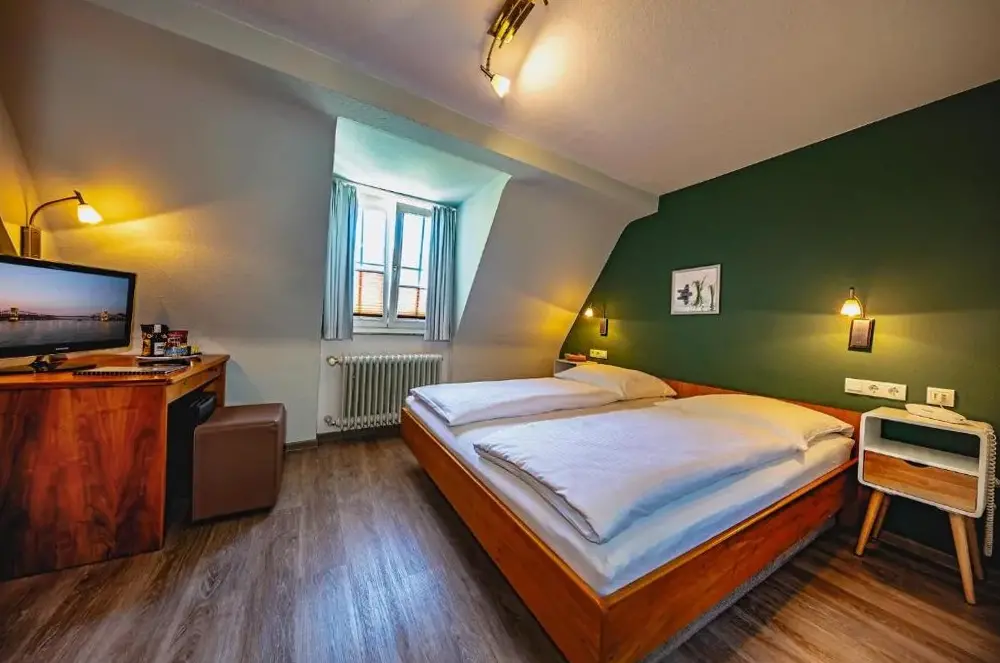 More information about Gasthaus zum OchsenAm Bismarck is a centrally located 3-star hotel in Mannheim at Bismarckplatz 9, offering free Wi-Fi, private parking, a bar, and non-smoking rooms. A short walk from Mannheim Central Station and close to Schlossgarten and Kunsthalle, it provides classically decorated rooms with flat-screen TVs, a minibar, and a private bathroom.