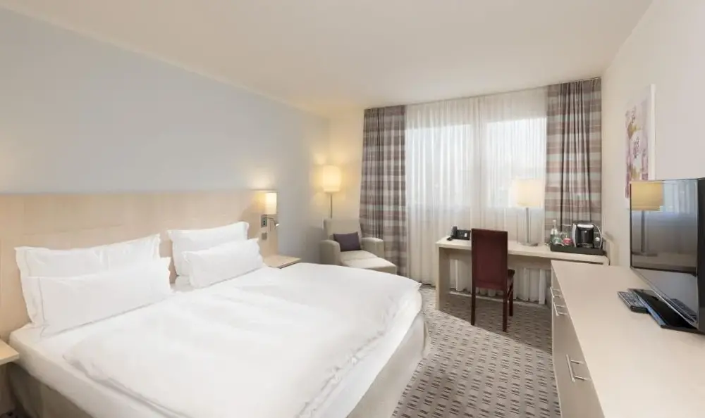 More information about Sonniges Zimmer Mit Balkon Im Herzen MannheimsMercure Hotel Mannheim am Rathaus is a modern 3-star hotel located a short walk from Mannheim’s town hall, offering free WiFi, a restaurant for lunch and dinner on weekdays, a garden terrace, Piemont bar, and bright, air-conditioned rooms with satellite TV and desks.