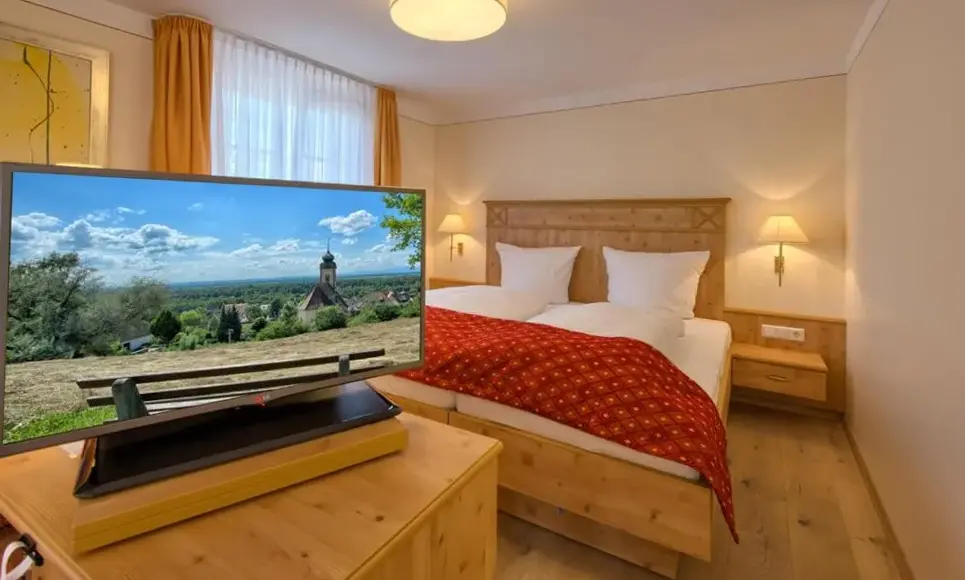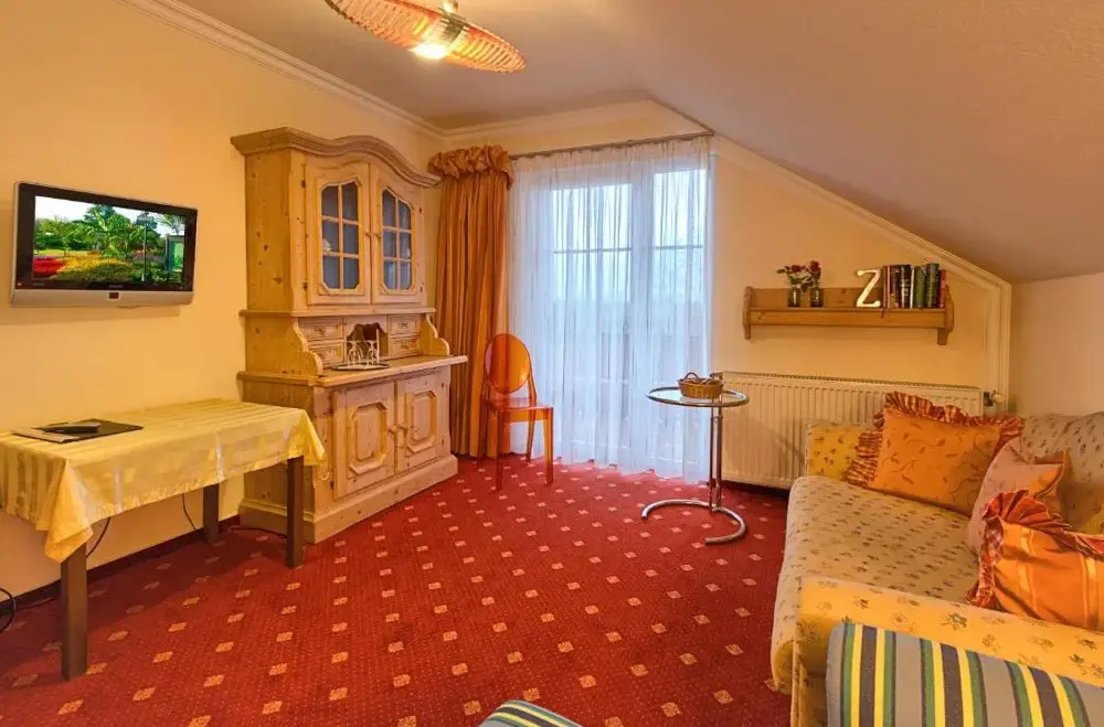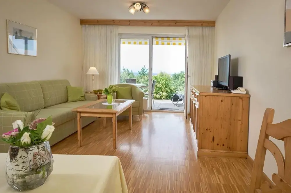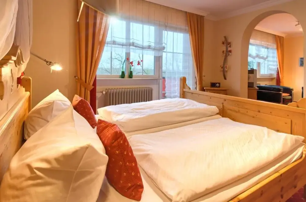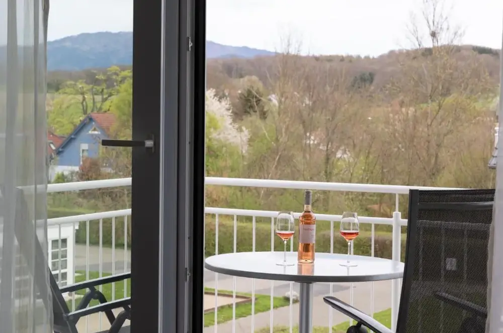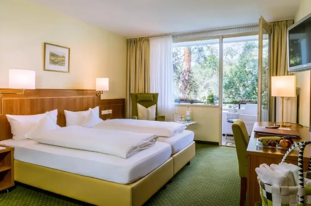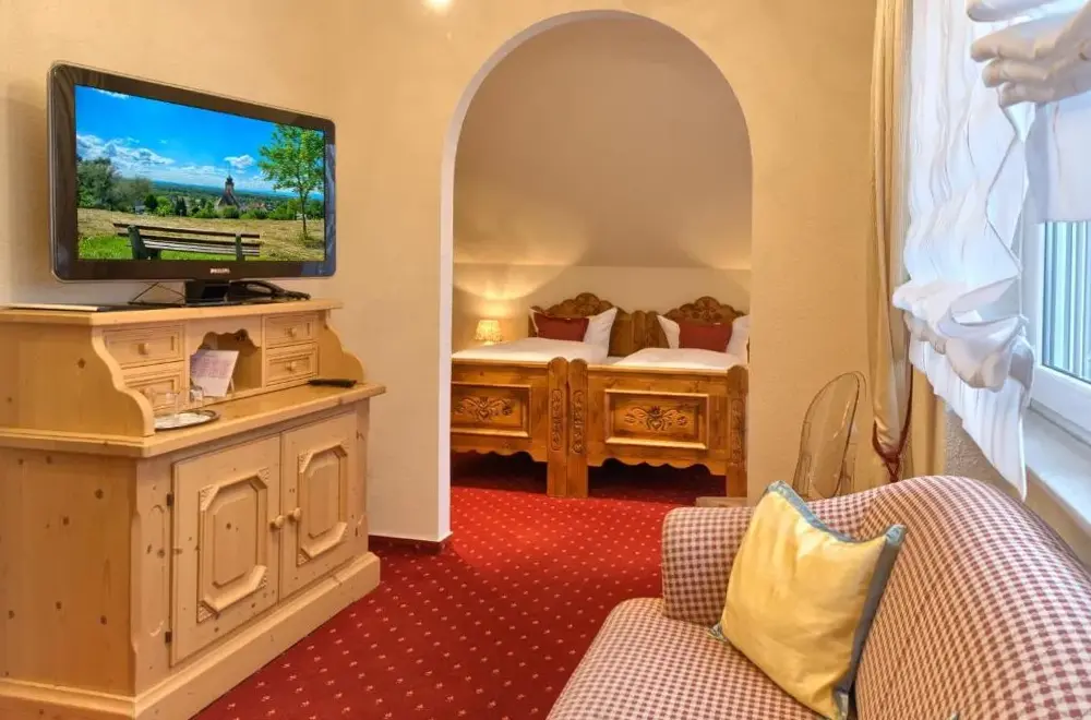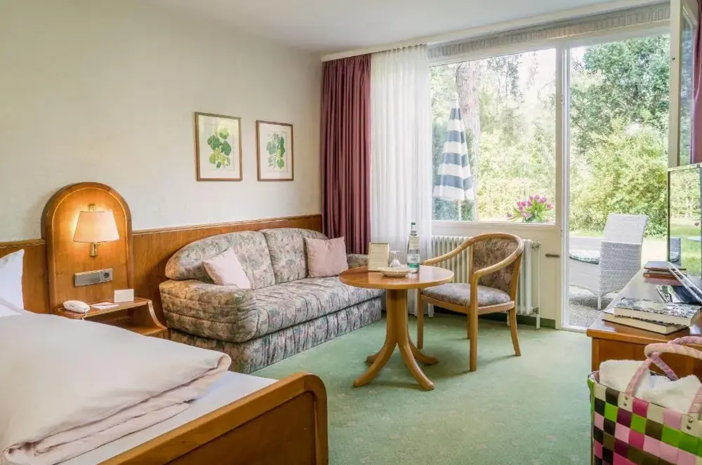 Más información sobre Kurhotel MarkushofHotel Schmid en Bad Bellingen ofrece habitaciones familiares con baños privados, ropa de cama hipoalergénica y suelos de parquet. Cada habitación tiene un balcón con vistas al jardín, a la piscina o a las montañas, además de minibar y TV.