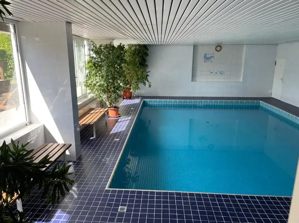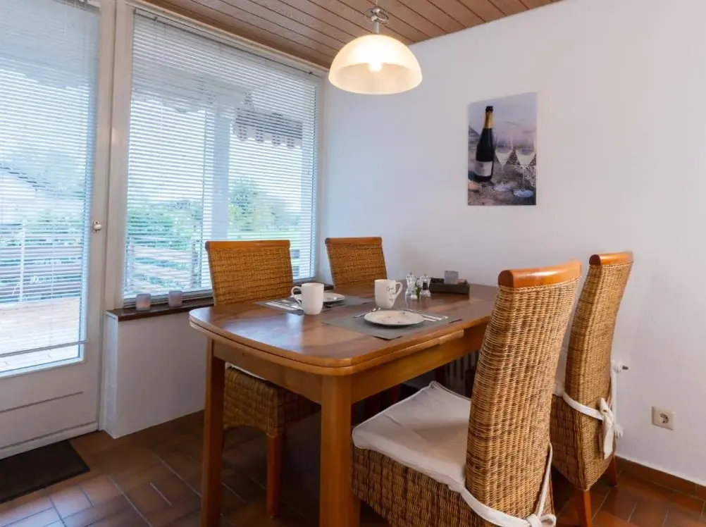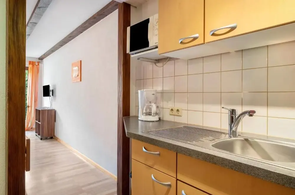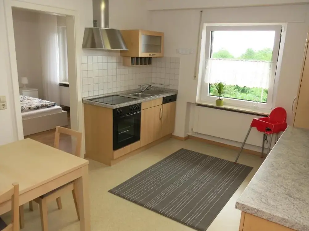 Más información sobre Ferienhaus RheintalblickFerien-Appartement am Hebelhof en Bad Bellingen ofrece un apartamento de una habitación en planta baja con balcón y vistas al jardín. Incluye kitchenette, zona de comedor y suelos de parquet. Bellas instalaciones: sauna, terraza, piscina cubierta y Wi‑Fi gratuito; gimnasio, ascensor, servicio de limpieza, estación de carga para vehículos eléctricos, zona exterior, habitaciones familiares y parking