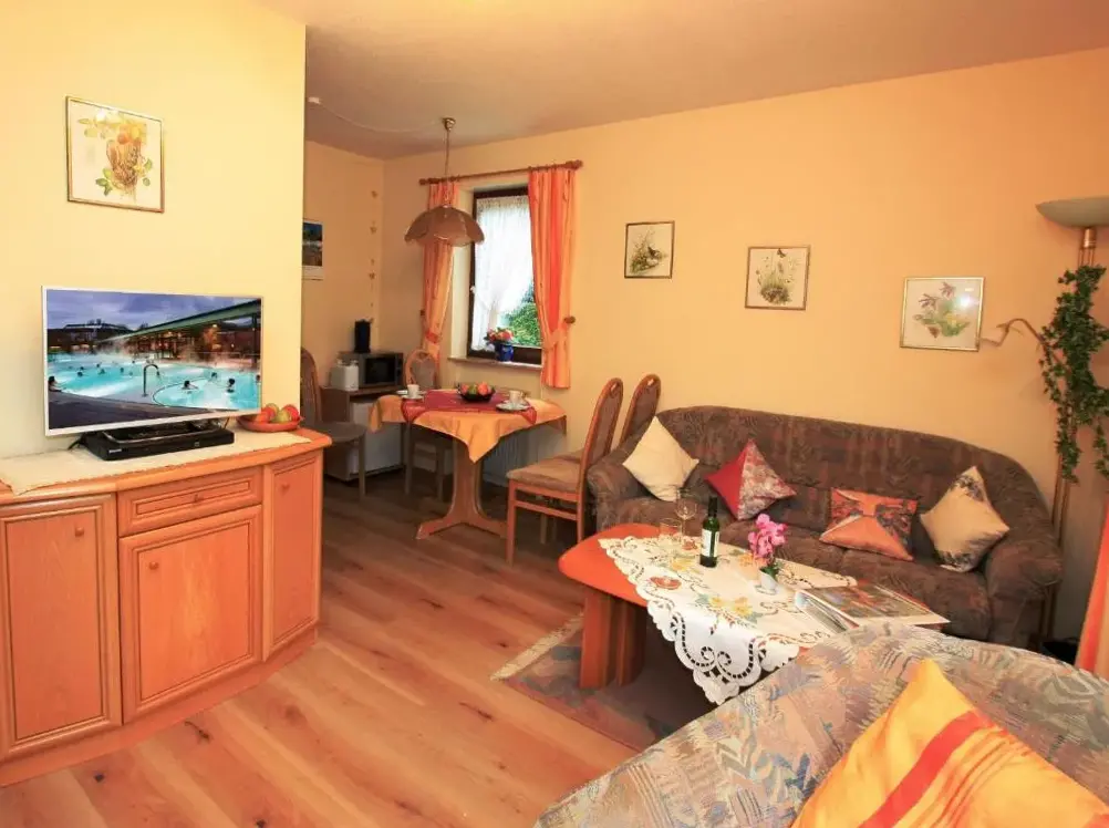 Más información sobre Wellness & Golf Appartment 5.9 ( Apartment Bär)Ferienwohnung Wagner con 35 qm Fr en Bad Bellingen ofrece un apartamento espacioso con una habitación, WiFi gratis, cocina completamente equipada y lavadora. Cuenta con ascensor, zona de comedor al aire libre y parking privado gratuito. También terraza, cafetera y TV.