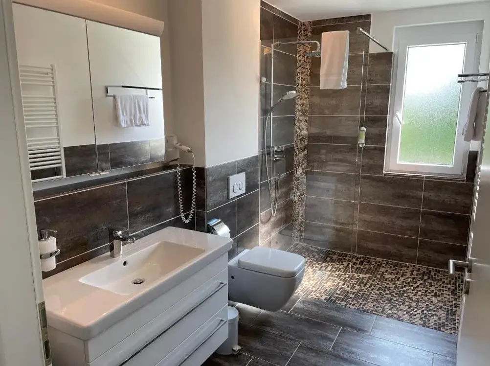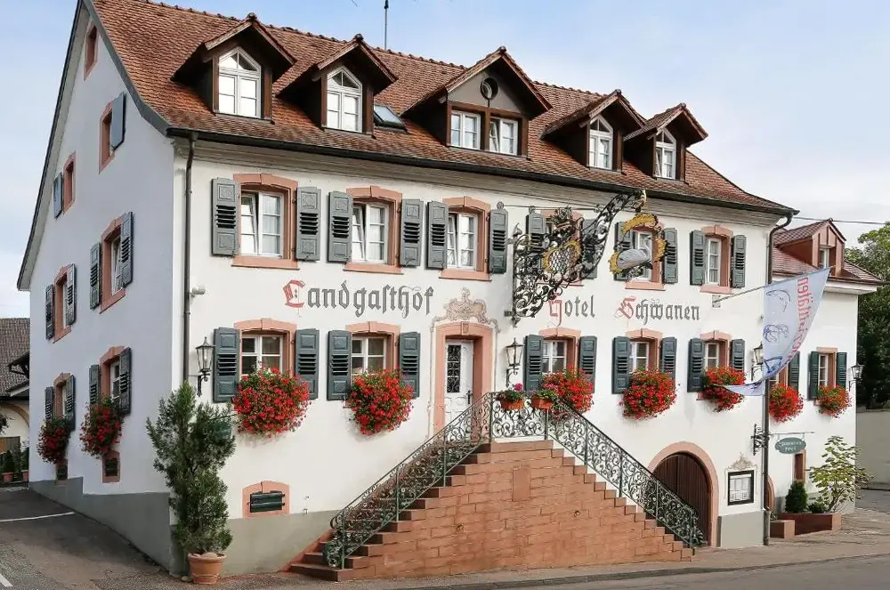 Más información sobre Appartementhaus im GrünEl Flair Hotel Schwanen, un establecimiento gestionado por una familia, se encuentra en el centro de Bad Bellingen en Rheinstraße 50, a solo 1 minuto a pie del parque termal de la ciudad. Ofrece un desayuno diario tipo buffet y habitaciones espaciosas con WiFi gratis, TV de pantalla plana, caja fuerte y baño privado con secador.