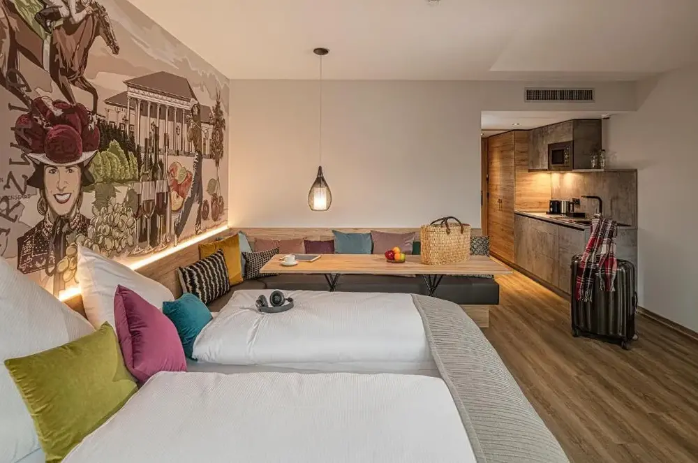 Mais Informações sobre Hochkopf Suite - Premium Apartment - SchwarzwaldO ADORO Aparthotel em Bühl oferece acomodações confortáveis com quartos para família com kitchenette, ar-condicionado, Wi-Fi gratuito e escrivaninha. A propriedade possui centro de fitness, terraço solar, restaurante e bar, com café da manhã continental ou buffet com especialidades locais e pastelaria fresca.