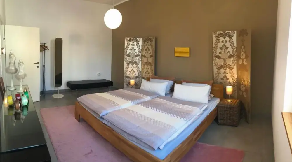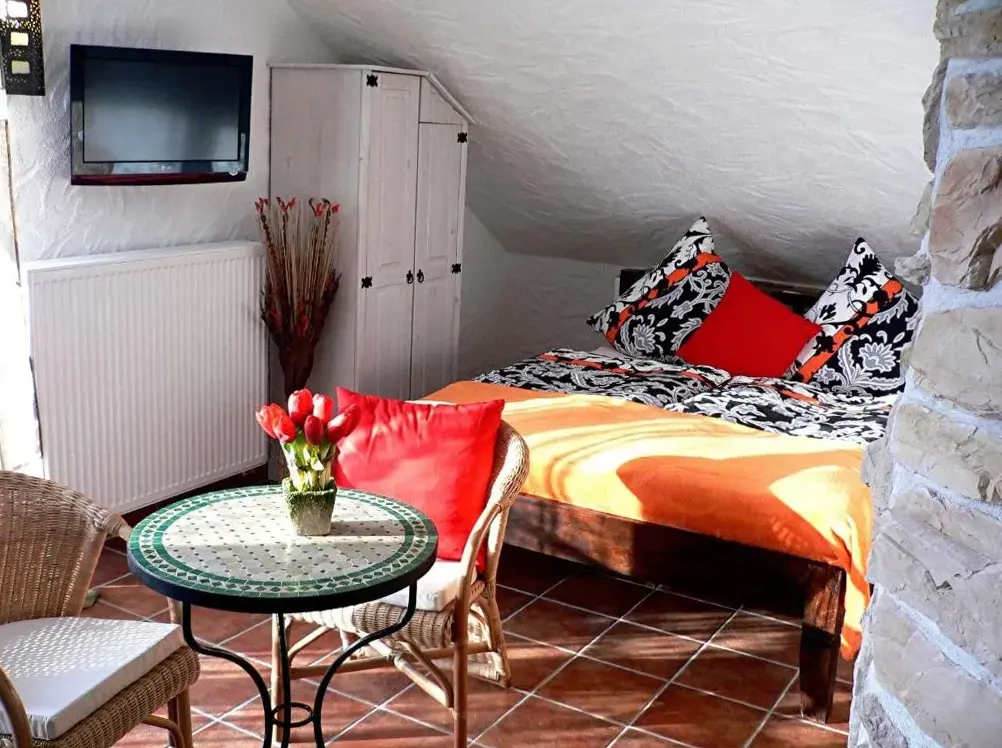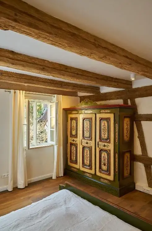 Mais Informações sobre Ferienwohnung AschoffDie Grüne Bettlad Boutique-Hotel em Bühl oferece quartos familiares com casa de banho privativa, ar condicionado e vista para as montanhas. Cada quarto inclui duche sem plataforma, artigos de higiene gratuitos e TV. Comodidades: terraço solar, jardim, bar, Wi-Fi gratuito, lareira exterior, cafetaria e área de estar exterior; estacionamento privado gratuito no local.