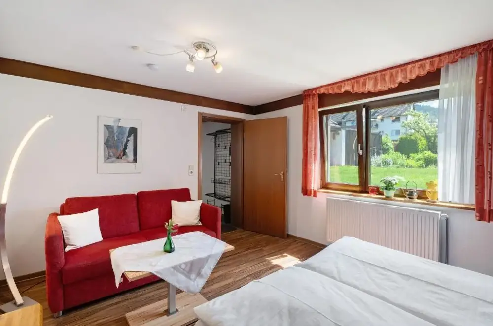 Mais Informações sobre Berggasthof ImmensteinFerienwohnung Schwarzwaldaussicht em Bühl oferece um apartamento espaçoso com vista para o mar e as montanhas, um terraço para relaxar ao ar livre e Wi-Fi gratuito. Comodidades modernas incluem kitchenette, casa de banho privativa, lareira, barbecue e TV, além de máquina de café, frigorífico, máquina de lavar loiça, forno e fogão.