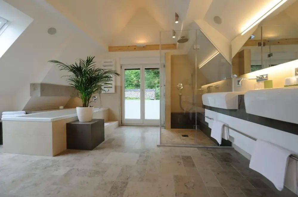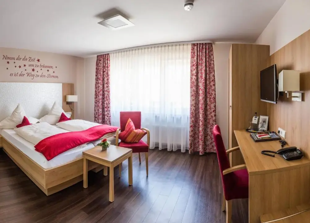 Mais Informações sobre Badischer HofKloster Maria Hilf em Bühl oferece quartos familiares confortáveis com casa de banho privada, sofás-cama, secretária, TV, chaleira elétrica e WIFI gratuito. Pode relaxar no jardim ou na varanda, com áreas de sentado ao ar livre e zona de piquenique. Estacionamento privado gratuito no local. Pequeno-almoço continental servido diariamente, com opções para dietas especiais.