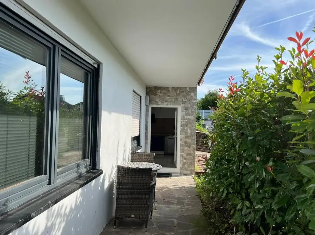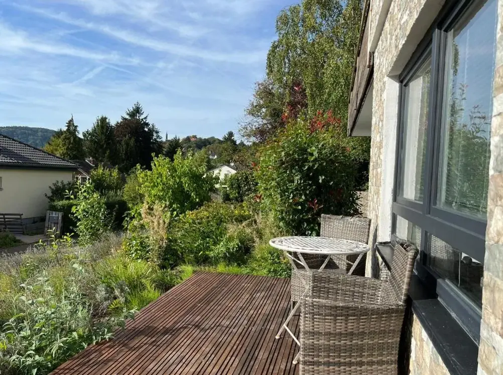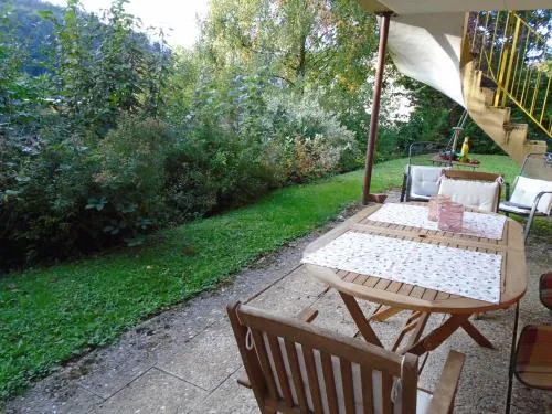 Mais Informações sobre Ferienwohnungen Flussufer - Neckargemünd AltstadtFerien-Wohnung am Menzer-Park em Neckargemünd oferece um apartamento recentemente renovado com terraço e WiFi gratuito, com kitchenette totalmente equipada, varanda, pátio e vistas para o jardim. Check-in/check-out privados, estacionamento de bicicletas e estacionamento privado gratuito garantem comodidades convenientes, juntamente com uma mesa de trabalho, área de jantar e lavadora.