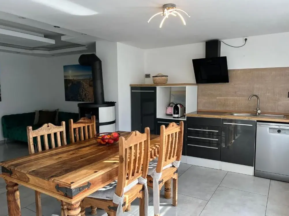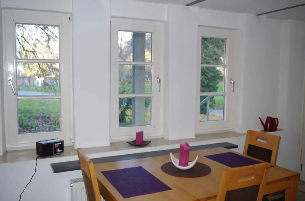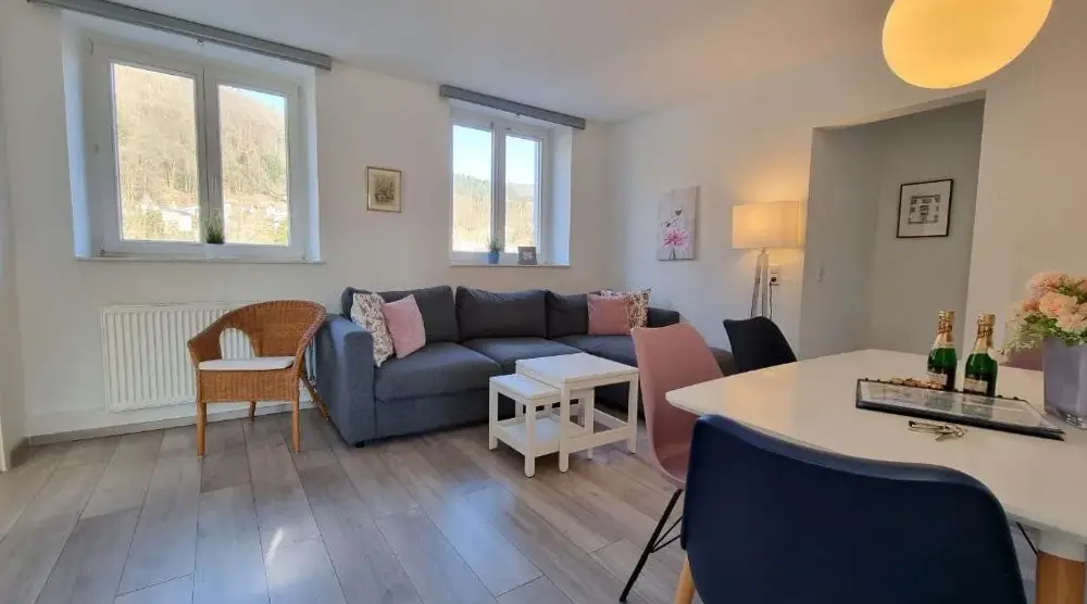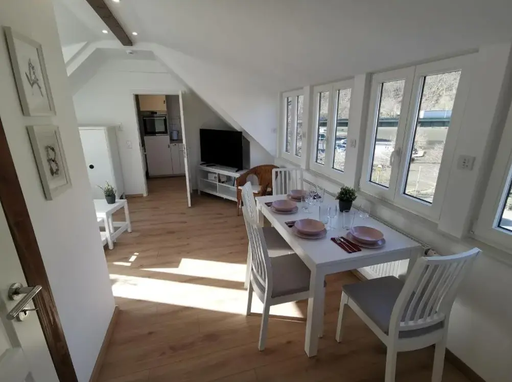 Mais Informações sobre Ferienhaus FeniModerne Ferienwohnung in Dilsberg oferece um apartamento espaçoso em Neckargemünd, com dois quartos, sala de estar e kitchenette, garantindo conforto para todos os hóspedes. Desfrute de um terraço, Wi-Fi gratuito e estacionamento privado gratuito no local, além de lareira e isolamento acústico para uma estadia relaxante.