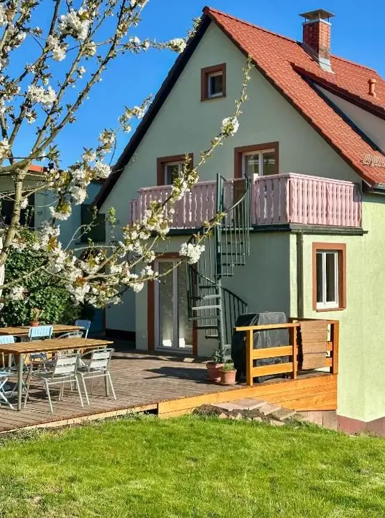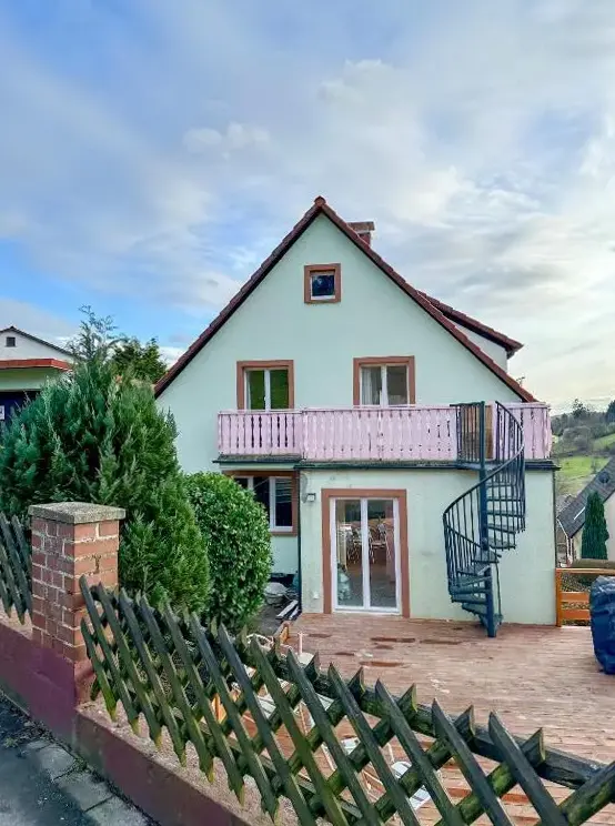 Ferienhaus Burgi em Neckargemünd oferece uma casa de férias ampla com quatro quartos e duas casas de banho, sala de estar e quartos familiares. Desfrute do jardim e da varanda com vistas para o jardim e para as montanhas, mobiliados com móveis de exterior e churrasqueira.