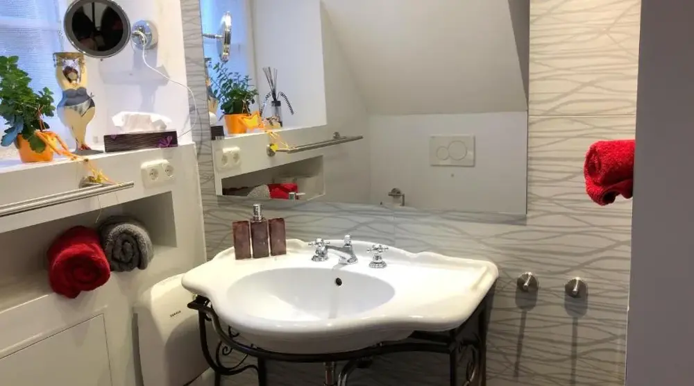 Mais Informações sobre Ferien-Wohnung am Menzer-ParkArt Hotel Neckar, em Neckargemünd, oferece quartos confortáveis com casas de banho privadas, fatos de banho, e Wi-Fi gratuito. Cada quarto inclui secretária, TV e isolamento sonoro para uma estadia relaxante. Check-in/checkout privados, serviço de concierge e uma cafetaria, além de cabeleireiro, estacionamento para bicicletas, aluguer de bicicletas, balcão de excursões e guarda‑volumes.