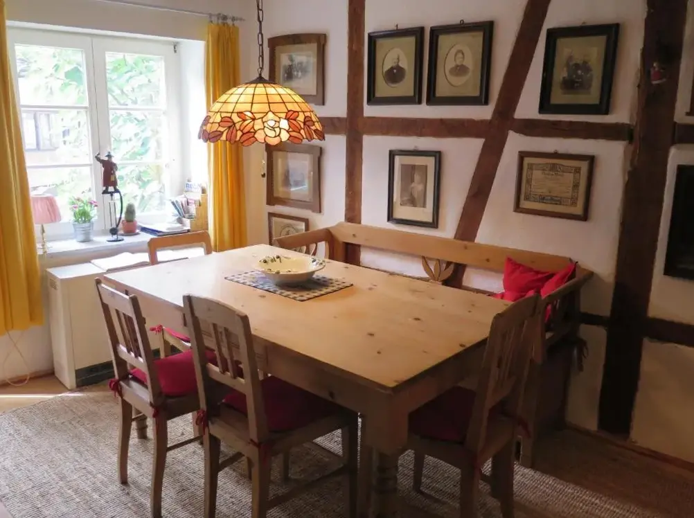 Mais Informações sobre Moderne Ferienwohnung in DilsbergHistorisches Ferienhaus Veste Dilsberg em Neckargemünd oferece uma casa de férias com entrada privada e pisos de azulejos e parquet, além de comodidades modernas como Wi-Fi gratuito, cozinha totalmente equipada, máquina de lavar louça, forno, máquina de café, televisão, área de jantar e sofá-cama. O restaurante serve cozinha alemã.